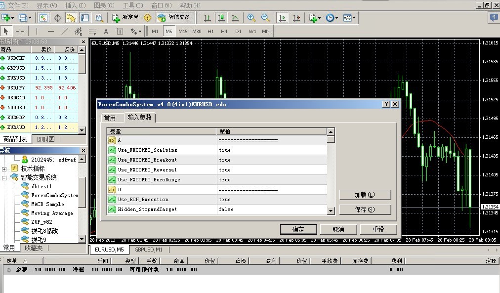 点击“加载”,然后选择需要加载的.set文件,然后点确定进行EA加载。