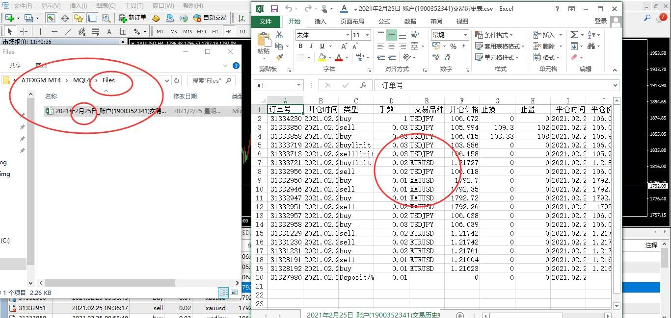 由于电脑系统等方面原因,如果不能顺利打开EXCEL表格文件,那也是没有关系的,我们在mt4图表上方菜单栏依次点击“文件/打开数据文件/MQL4/Files”,Files文件夹就是保存文件的地方,打开后就能看到保存好的EXCEL表格文件,打开文件后,我们就可以利用EXCEL表格来对交易历史数据进行排序、分类汇总、数据筛选、自动求和等等分析统计了。
