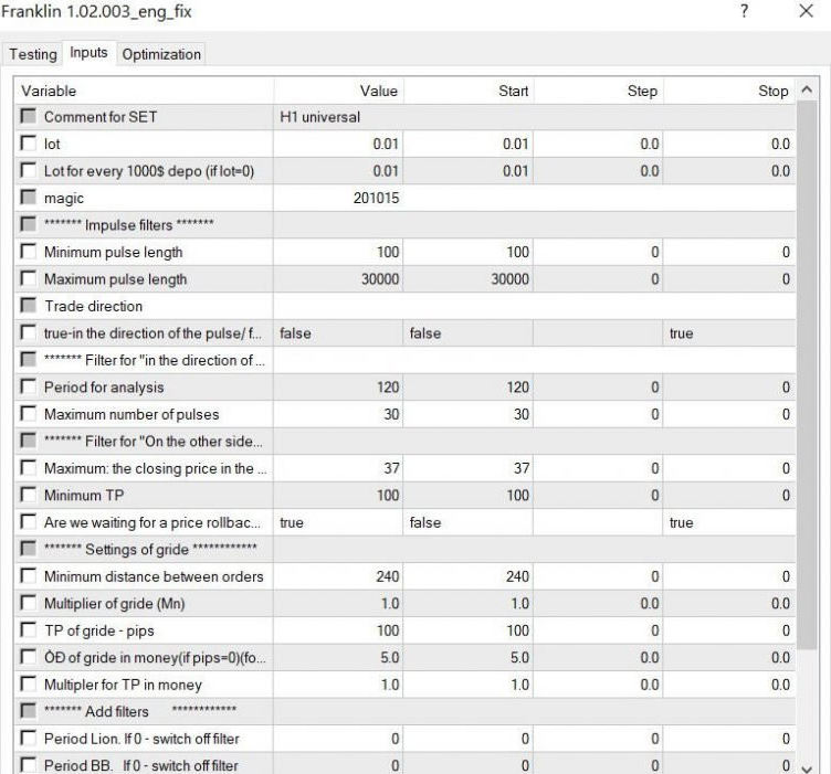 基于回测结果 EA 使用 Grid 方法,在长时间回撤的情况下,EA 提供保护算法,有助于降低大幅回撤的可能性。AvtomatFX Franklin 机器人为您提供了大量自定义选项。因此,您可以通过针对每个单独的货币对和时间范围优化此智能交易系统来自己找到更合适的设置。