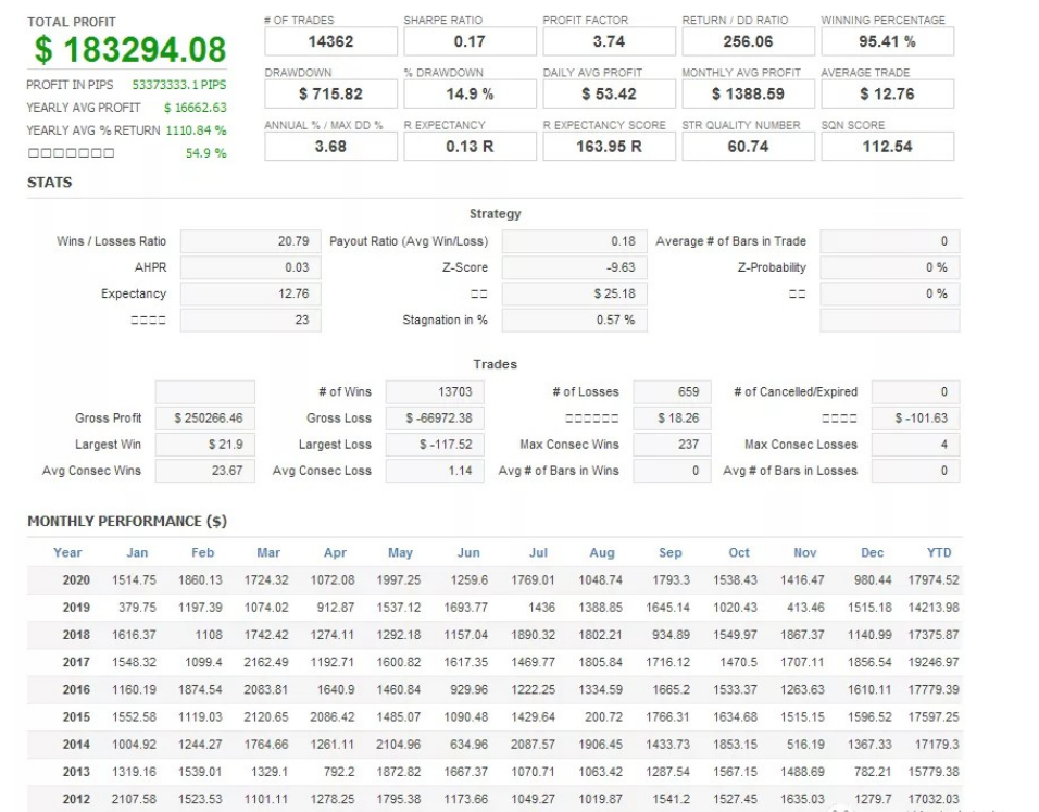 它不用简单的算法就可以使用过时的指标和模式来分析市场,从而确定输入和定单的方向。允许的最大准确性回测显示出很高的支付率,并且对意外的市场事件具有良好的抵抗力。推荐测试期2003年至今。