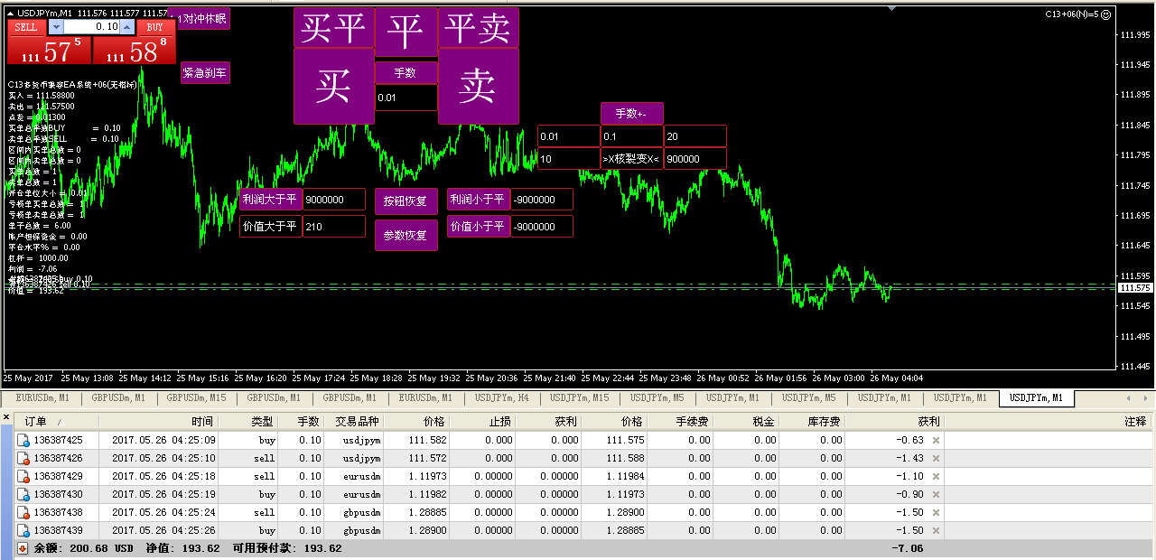 C13+06(N)多货币开单整体平仓 可以同时开8个货币 整体价值平仓