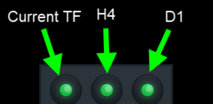 右下角的三个圈依次表示,当前周期的趋势、H4周期的趋势,D1的趋势。