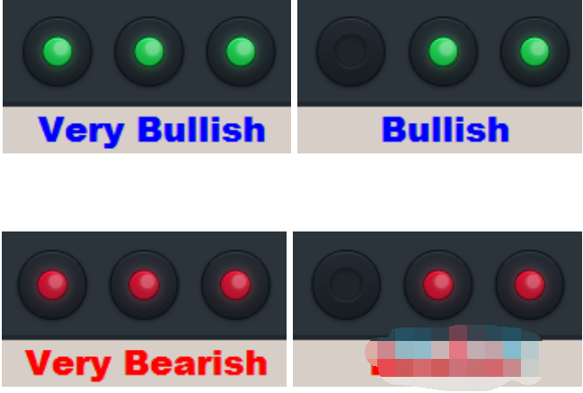 如果3个圆圈有两个是同样的颜色,比如,有两个颜色都是红色,那么就看跌。