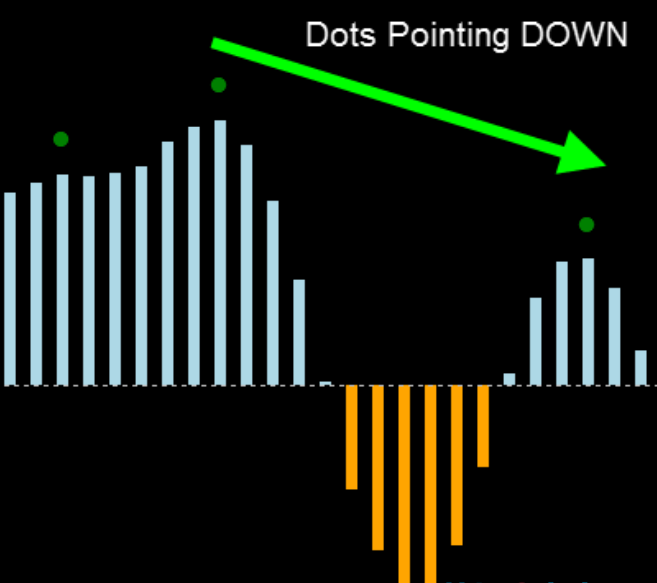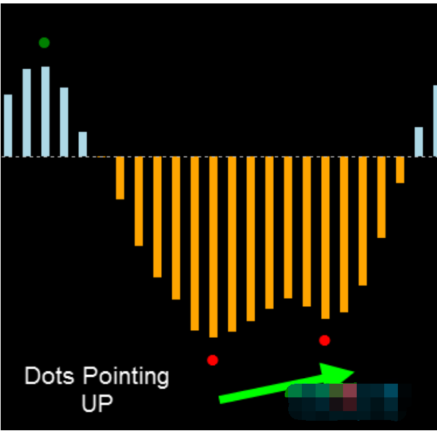 看跌:如果图中有两个点是向下走的就可以做多(这两个点可以是红色,也可以是绿色)