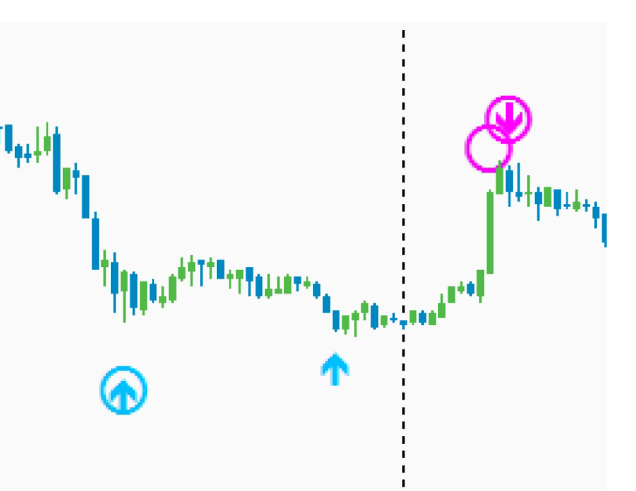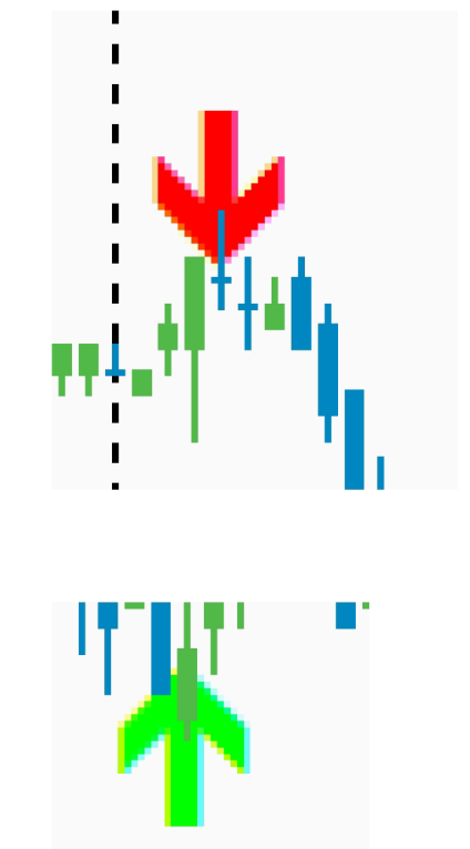 第一个指标会在主图给出两个大的绿色或者红色箭头