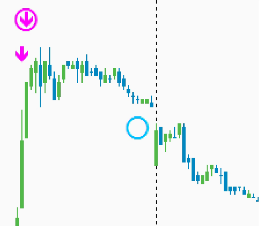 3、空白的圆圈出现后,平仓