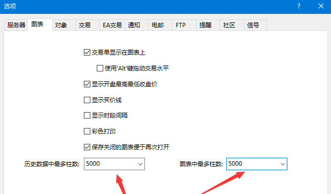另外,在MT4的选项这里设置一下,这样指标会运行的更好