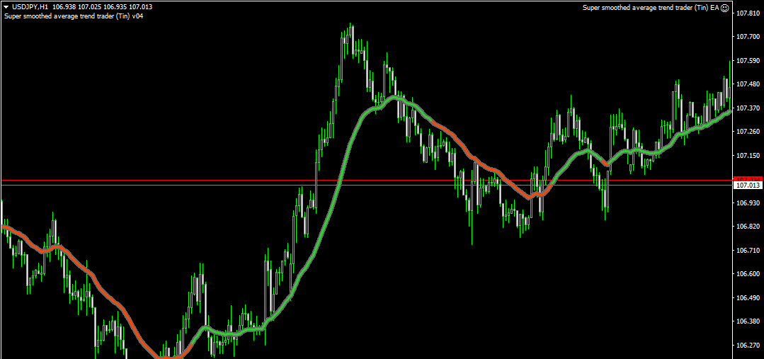 Super smoothed average trend,这个指标在国外是非常出名的,非常准确,分享这个指标给大家,另外也有人用这个指标写了一个ea,简单的做了下回测,效果还很不错。