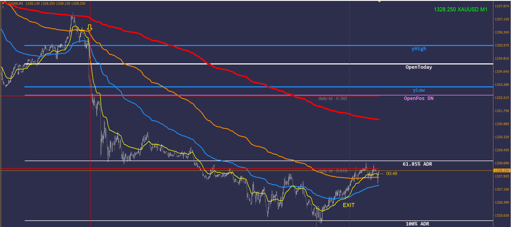 黄色那根线是信号线,其他那几根是趋势线,交易主要就是依靠他们给出的趋势。