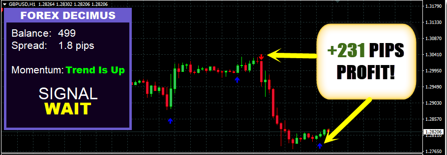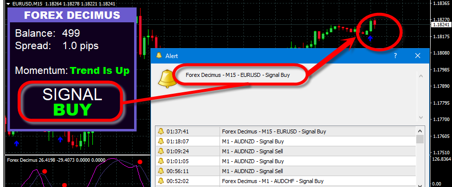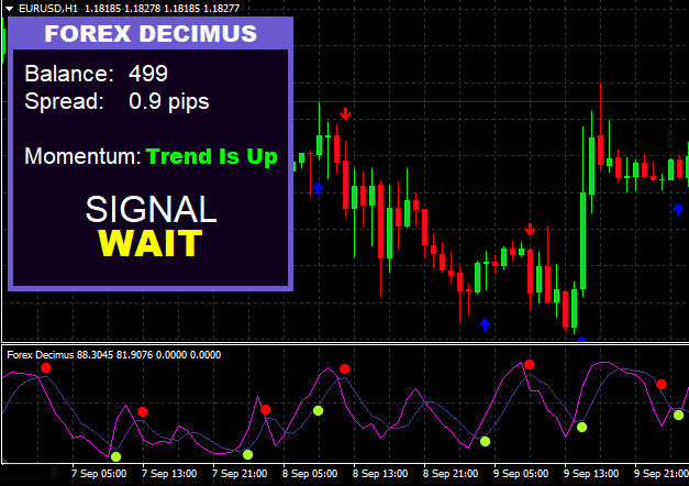 图表面板显示余额,点差,趋势和信号。没有滞后