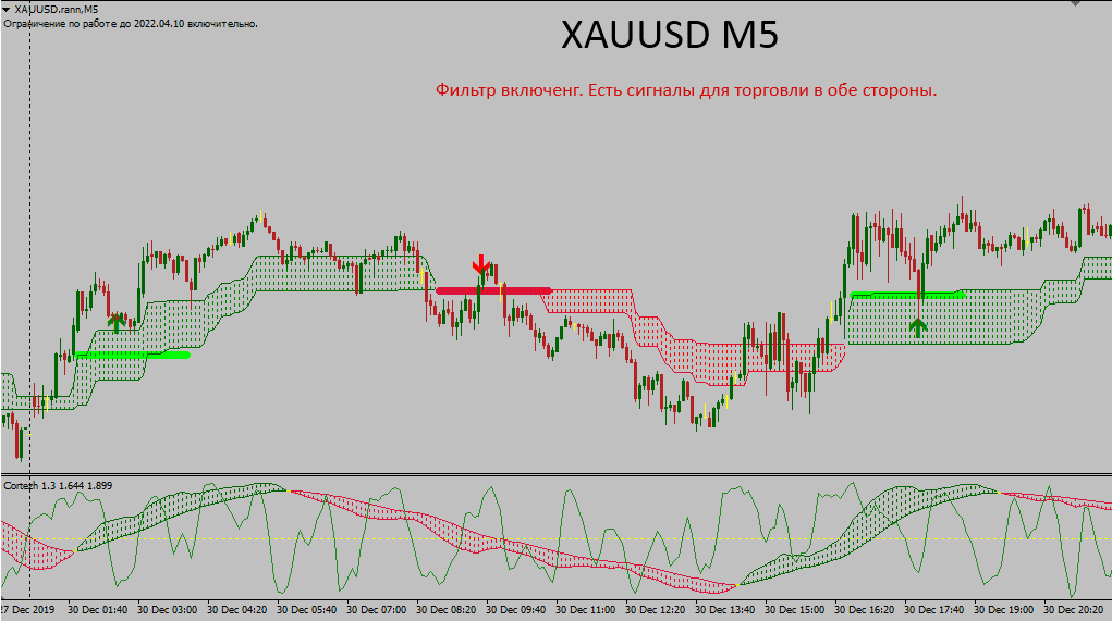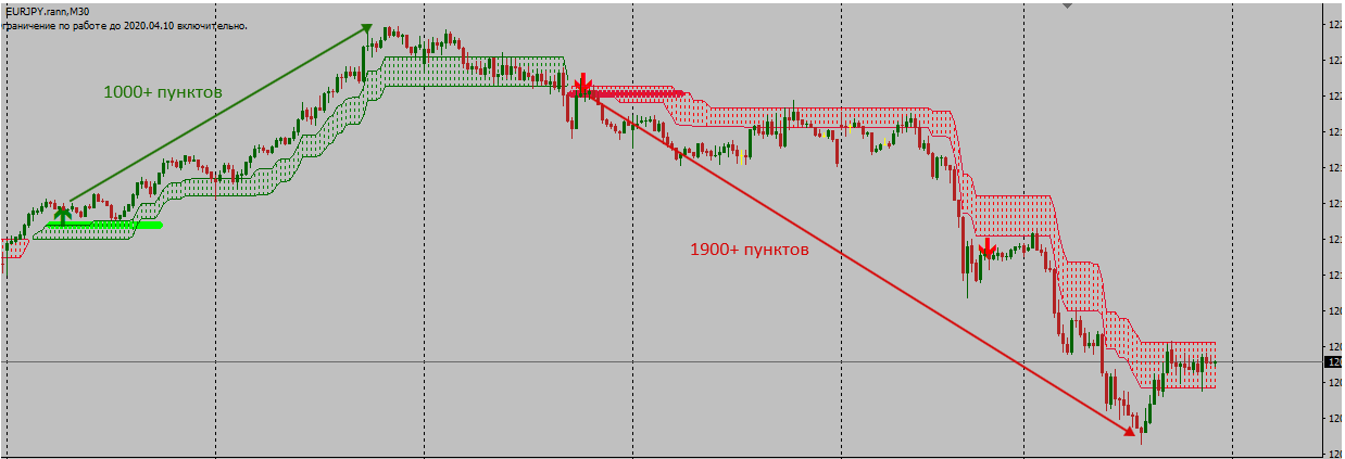 在中期交易方式中,持仓最多几天,因此最好查看M30时间框架上的信号。 发出信号的频率会降低,但是一笔交易的利润会很大。