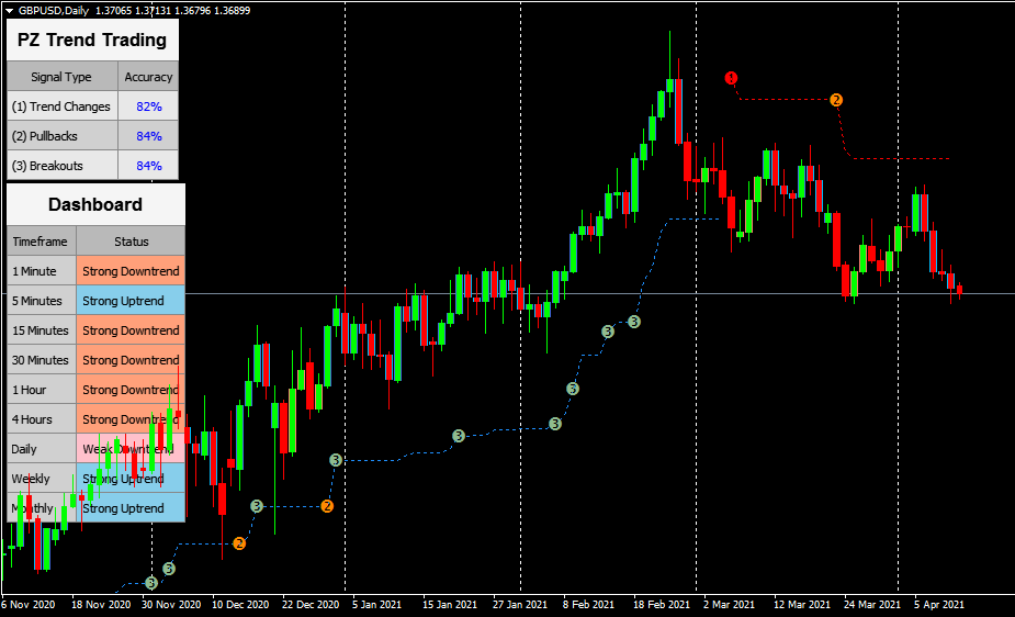 【指标】Trend Trading 4.5 趋势指标,上升趋势,下跌趋势,趋势回调,趋势突破 2021-12-15 精选策试站 (1) 上升趋势 (1) 下跌趋势 (2) 趋势回调 (3) 趋势突破 --- 下降趋势中的修正 --- 上升趋势中的修正 蓝条是一个看涨的子趋势 红条是一个看跌的子趋势 使用H4或者以上周期 按照下方设置: 外汇EA资源免费下载方式说明 1首先,请添加官网唯一指定微信ID:【fxeyes】,留言:领取EA。 2☆客服在线时间 09:00-18:00 。客服未回复时,可以先提供本网你所需的EA标题名称、编号或网址链接(三者之一),然后提供你的QQ邮箱或直发微信,待客服在线后,既可免费领取对应EA资源。 3说明:本站EA资源均为收集,无法保证所有均可正常运行,没有售后,请悉知! · 本网所载的全部内容仅作参考之用,所载资料来源和观点客观可靠,但不担保其准确性或完整性,且内容不构成对任何人的投资建议。 · 本网所提供的行情数据分析及观点不应取代个人的独立判断,不对因使用本网而造成的损失承担任何责任,据此入市,风险自担!