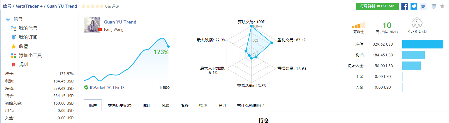 Guan YU Trend 关羽趋势EA,一次一单,每单都有止损,主跑黄金 2021-12-21 精选策试站 EA是一次一单,每单都有止损 货币对:黄金 时间周期:15分钟 EA信号:https://www.mql5.com/zh/signals/1060725 CTimer是指标文件,EA是1.5版本 外汇EA资源免费下载方式说明 1首先,请添加官网唯一指定微信ID:【fxeyes】,留言:领取EA。 2☆客服在线时间 09:00-18:00 。客服未回复时,可以先提供本网你所需的EA标题名称、编号或网址链接(三者之一),然后提供你的QQ邮箱或直发微信,待客服在线后,既可免费领取对应EA资源。 3说明:本站EA资源均为收集,无法保证所有均可正常运行,没有售后,请悉知! · 本网所载的全部内容仅作参考之用,所载资料来源和观点客观可靠,但不担保其准确性或完整性,且内容不构成对任何人的投资建议。 · 本网所提供的行情数据分析及观点不应取代个人的独立判断,不对因使用本网而造成的损失承担任何责任,据此入市,风险自担!