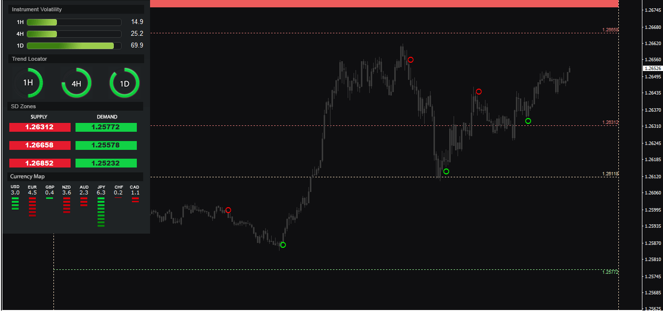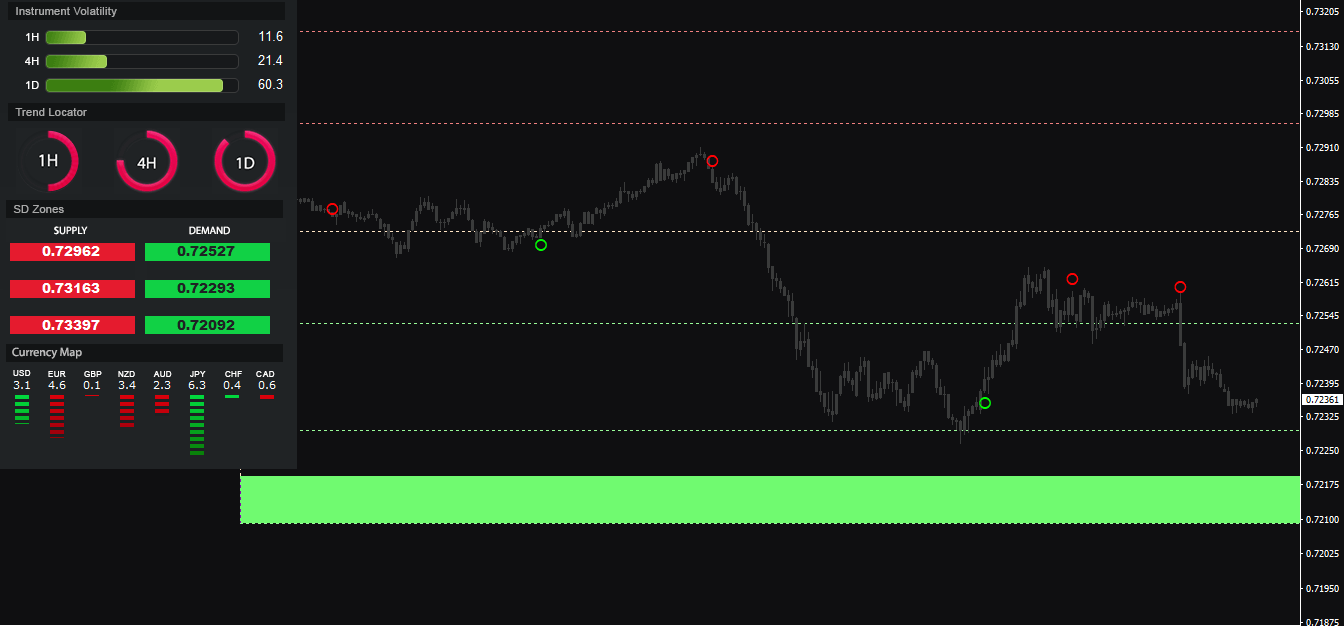 指标还提供了支撑阻力位建议和货币强弱指示
