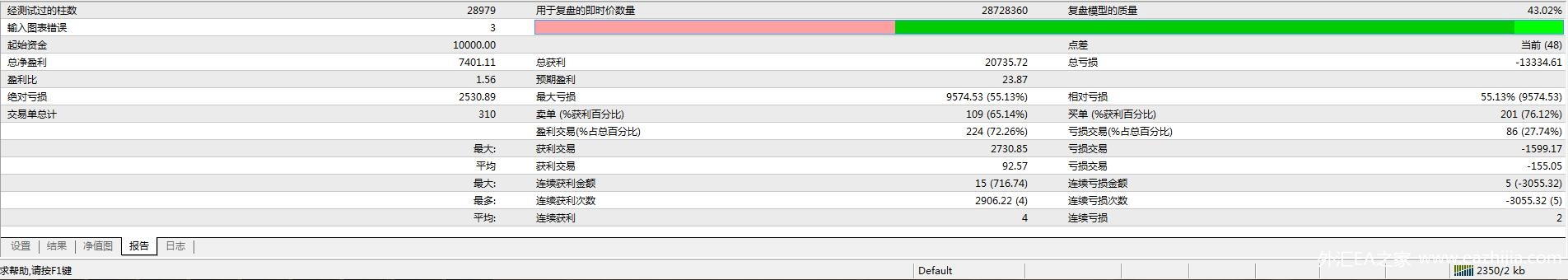先上图,现货黄金15分钟测试2015年11月开始,有兴趣的可以一起研究,从网上下了一个简单的马丁,自己慢慢研究修改,目前比较满意了,开始实盘。历史数据测试年回报大概45%,如果加大起始手数,收益会高很多但风险也会高一点,用10年数据做过测试结果还是比较理想。