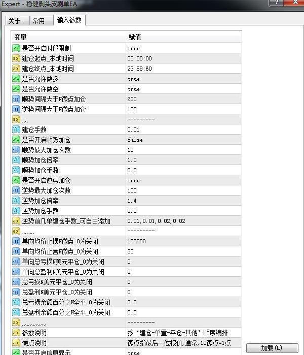想不赚钱都难,稳健剥头皮刷单EA 2022-05-26 马丁/加仓EA 剥头皮EA 刷单EA 最新升级版 增加 顺势,逆势,倍率+递增加仓,全自动交易。 时间控制开关 整体止损 整体平仓 。 增加 前几单 自由设置单量的功能 ,刷起单来更稳健 本剥头皮EA 刷单EA 盈利效果很好 1500美金 一个外汇( 澳美 美瑞等日均波动小的)品种 每天平均盈利25美金左右 月收益达40% 500美金 做0.001黄金 每天平均获利12美金左右 月收益达52% “本EA盈利能力较强,风险也较大,一定要按照介绍的技巧去做,规避大的风险。市场有风险,本EA可以实现盈利,但不保证一定盈利。” 详细参数和介绍看说明书 外汇EA资源免费下载方式说明 1首先,请添加官网唯一指定微信ID:【fxeyes】,留言:领取EA。 2☆客服在线时间 09:00-18:00 。客服未回复时,可以先提供本网你所需的EA标题名称、编号或网址链接(三者之一),然后提供你的QQ邮箱或直发微信,待客服在线后,既可免费领取对应EA资源。 3说明:本站EA资源均为收集,无法保证所有均可正常运行,没有售后,请悉知! · 本网所载的全部内容仅作参考之用,所载资料来源和观点客观可靠,但不担保其准确性或完整性,且内容不构成对任何人的投资建议。 · 本网所提供的行情数据分析及观点不应取代个人的独立判断,不对因使用本网而造成的损失承担任何责任,据此入市,风险自担!