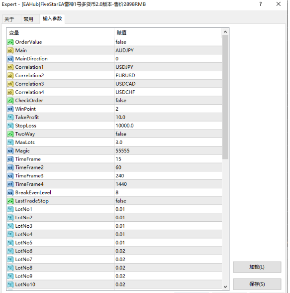 本EA采取五个货币发散收敛之联动关系,基于风险控制最小化和利润最大化的,对五种货币对同时下单并采取对冲形式下单,经过长时间实验测试发现能够明显且稳定获利证明真实成功的。下单仓位最低起步为0.01手,保险资金需要大于$2000进行交易。目前参数(除手数以外)已经是最佳化,建议默认无需修改。