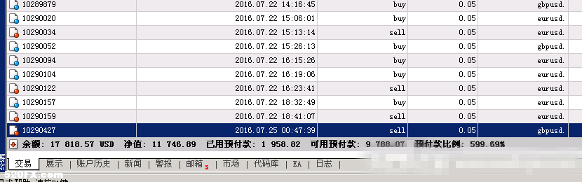 A4脱欧后起挂,参数不一样,6个货币对,手数0.1,最大回测10%,现净值14260,全自动从未手动平仓。