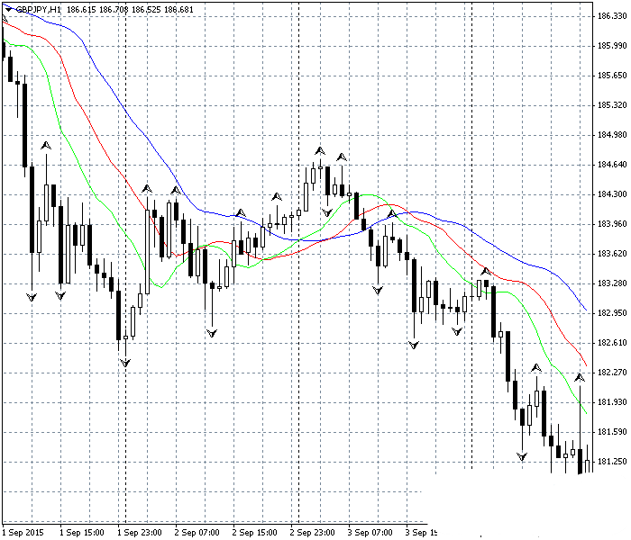 代码编写用于实际交易。其中有一个错误处理和修复函数, 智能手数调整。EA 的操作已适当注释。两类信号: 经典和挂单。信号的类型取决于鳄鱼线的相互布局。