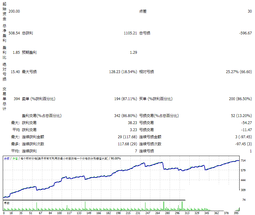 突破追涨EA-分段出场 2022-07-15 趋势/神经网络EA EA根据MA指标趋势判定入场,主做大方向趋势,当趋势判定多空后,开仓入场,根据趋势分批出场,可设置分批出场比例/各自止盈点。若趋势反转,则立刻止损出场; 优势:一次一单,带止盈止损,适应单边行情,追涨杀跌模式风险低,分批结仓锁住盈利; 最低初始本金:100美金; 推荐货币对:EURUSD/GBPUSD/GBPJPY/USDJPY/XAUUSD等高波率货币对; 推荐周期:H1; 附上欧美回测数据: 外汇EA资源免费下载方式说明 1首先,请添加官网唯一指定微信ID:【fxeyes】,留言:领取EA。 2☆客服在线时间 09:00-18:00 。客服未回复时,可以先提供本网你所需的EA标题名称、编号或网址链接(三者之一),然后提供你的QQ邮箱或直发微信,待客服在线后,既可免费领取对应EA资源。 3说明:本站EA资源均为收集,无法保证所有均可正常运行,没有售后,请悉知! · 本网所载的全部内容仅作参考之用,所载资料来源和观点客观可靠,但不担保其准确性或完整性,且内容不构成对任何人的投资建议。 · 本网所提供的行情数据分析及观点不应取代个人的独立判断,不对因使用本网而造成的损失承担任何责任,据此入市,风险自担!