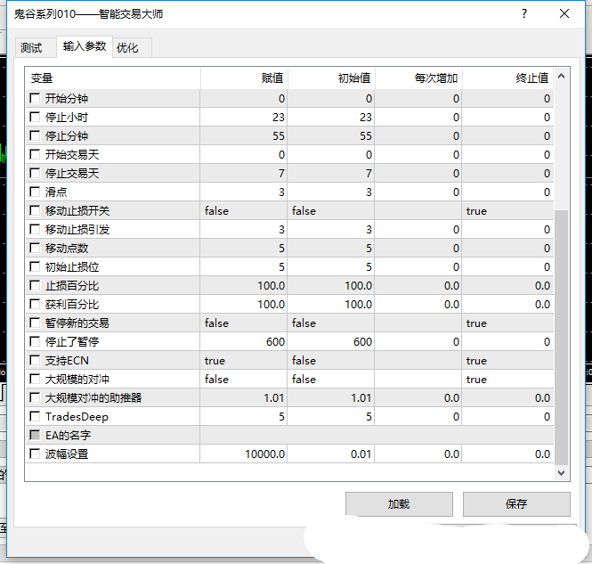 Forex hacked 是国外的一个商业软件,官网曾卖2000美金,如今还在热销售中。其作为一个双向对冲型的Martingale EA,与网格ea有好多类同的地方,只不过其加仓距离, 仓位,盈利目标比较清晰,容易方便设置。 作为商业销售Ea ,其添加了交易时间自动选择,可以避开重要新闻和数据发布时段交易。 其对冲功能减轻了资金要求,也可避免了逆势仓位造成的过多浮亏,等待市场回调,可以全部平掉仓位,又对其进行了汉化,增加了大行情时自动规避功能,此ea加仓功能用了sar 与 ma 两个指标做过滤,增加胜算;其参数设置比较简单清晰;参数设置: