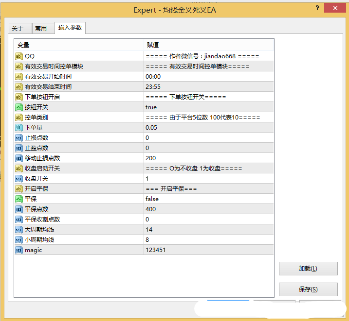 跟大家分享一个均线ea 2022-07-19 马丁/加仓EA 均线ea,大家可以自行设置参数 外汇EA资源免费下载方式说明 1首先,请添加官网唯一指定微信ID:【fxeyes】,留言:领取EA。 2☆客服在线时间 09:00-18:00 。客服未回复时,可以先提供本网你所需的EA标题名称、编号或网址链接(三者之一),然后提供你的QQ邮箱或直发微信,待客服在线后,既可免费领取对应EA资源。 3说明:本站EA资源均为收集,无法保证所有均可正常运行,没有售后,请悉知! · 本网所载的全部内容仅作参考之用,所载资料来源和观点客观可靠,但不担保其准确性或完整性,且内容不构成对任何人的投资建议。 · 本网所提供的行情数据分析及观点不应取代个人的独立判断,不对因使用本网而造成的损失承担任何责任,据此入市,风险自担!
