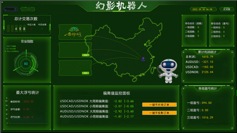 幻影机器人是一款对冲策略,有一定的加仓,每组加仓都有严格的加仓层数限制。幻影相较于极影,魔影相比,出场更快,出场率更高,特别在极端行情的时候,能够智能的缩堿仓位。从复盘策略和盘测试来看,效果稳定,很适合大家见好就收的心理。